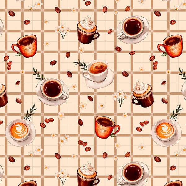 Descrição Tecido Tricoline Estampa de Café - 0,50x1,50mt
