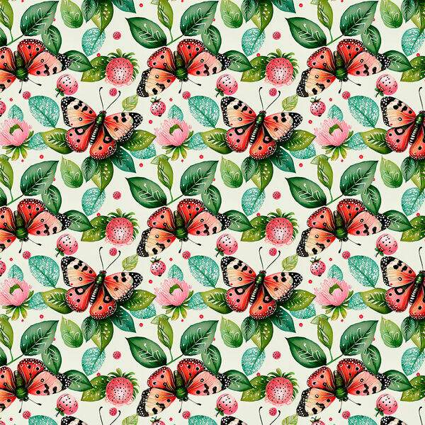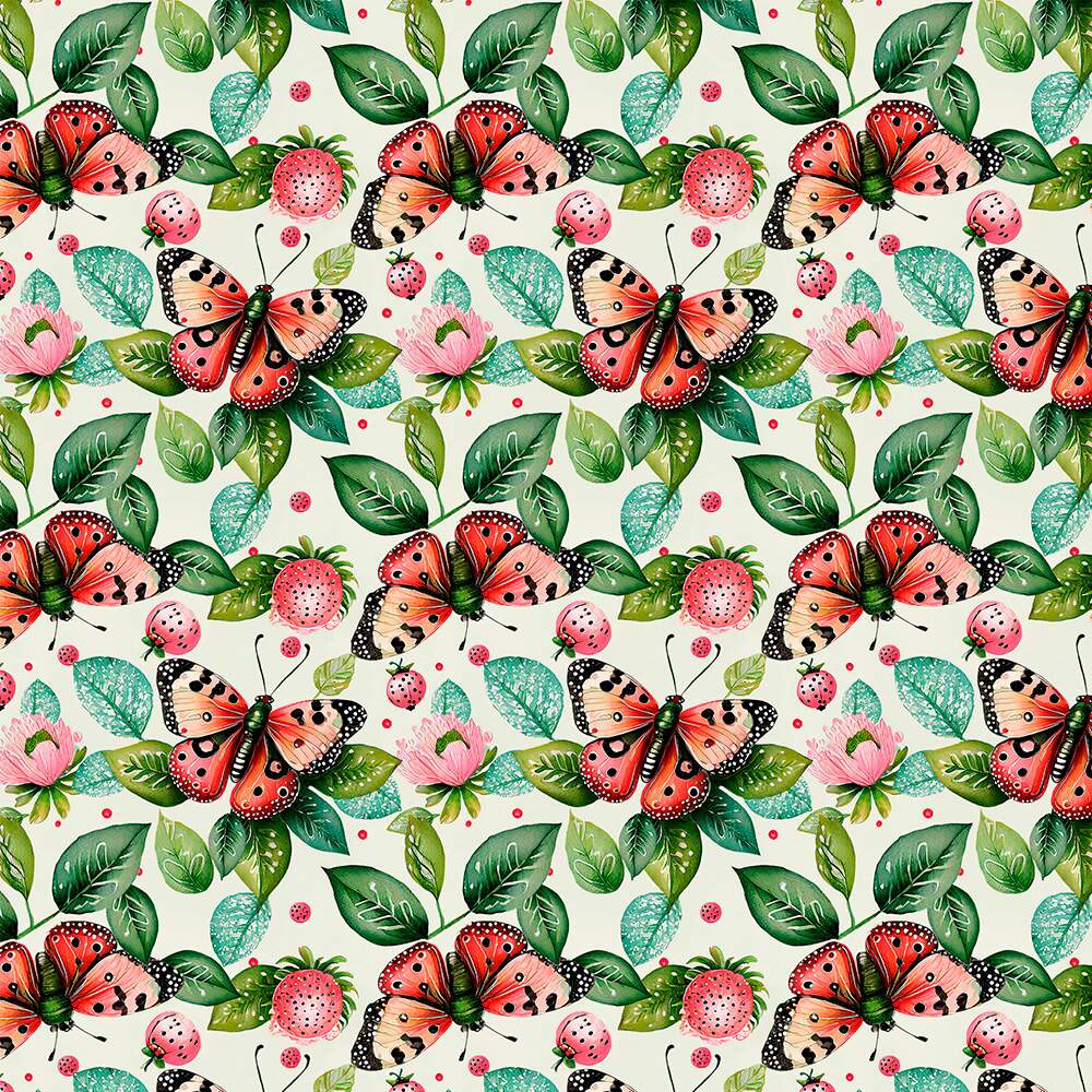Descrição Tecido Tricoline Estampa Floral Borboletas 9050 - 295 - 0,50x1,50mt