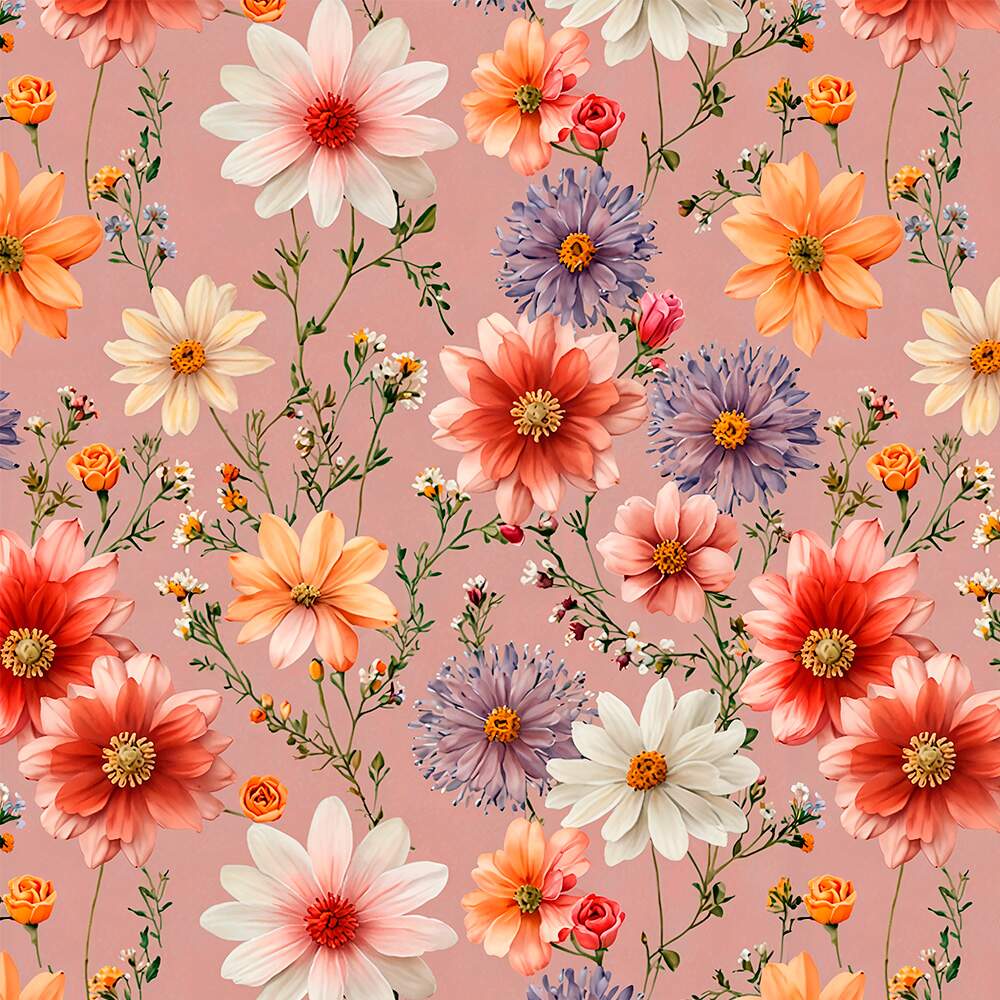 Tecido Tricoline Estampa Floral Rosê - 0,50x1,50mt