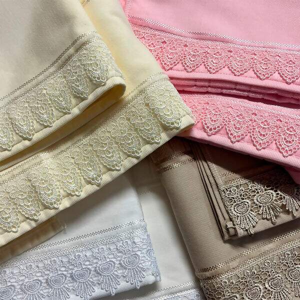 Descrição Toalha com Guipir Kit Banho e Rosto para Pintura / Bordado Artesanalle