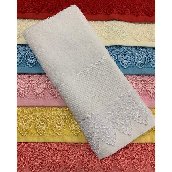 Amplie a foto para ver o modelo da renda de cada cor de toalha.