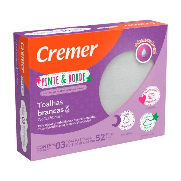 Descrição Toalha Fralda Pinte e Borde Cremer Luxo - Caixa com 3 Unidades